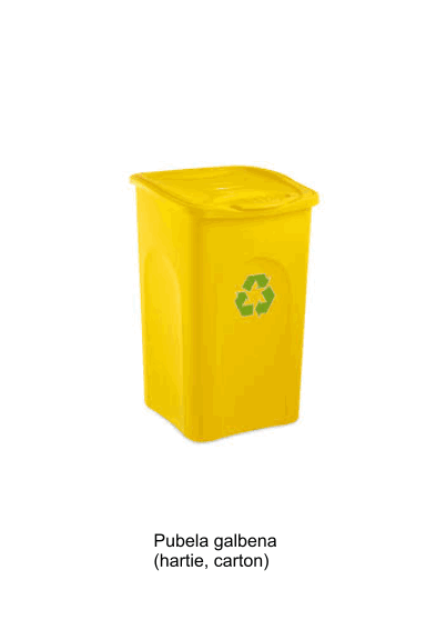 Se foloseste pentru de pozitarea deseurilor reciclabile, ambalajele fiind golite complet de continut. In acest recipient se poate depozita: