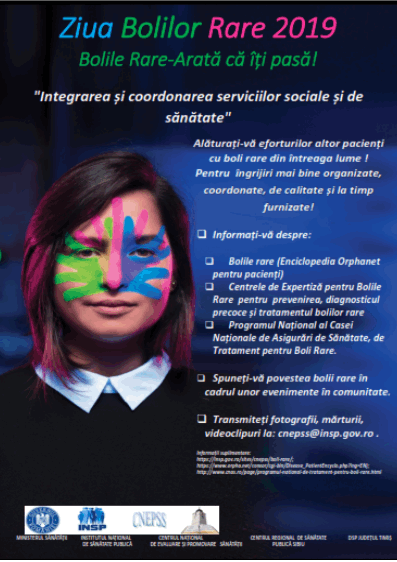 Ziua Internationala a Bolilor Rare 2019 este o oportunitate de a face parte dintr - o miscare globala adresata factorilor de decizie politica, personalului medical si serviciilor de ingrijire pentru a coordona mai bine toate aspectele legate de ingrijirea persoanelor care sufera de o boala rara.